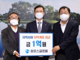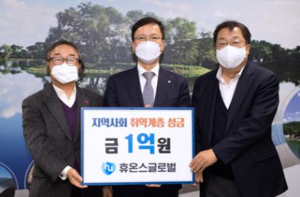 ㈜휴온스글로벌(대표이사 윤성태)은 30일 지역사회의 취약계층을 위해 써달라며 1억원 상당의 성금을 제천복지재단에 기탁했다.