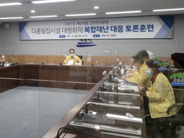 계룡시는 지난 11월 29일 시청 상황실에서 재난안전 협업부서와 유관기관 등이 참여한 가운데 재난대응 역량 강화를 위한 ‘2021년 재난대응 안전한국훈련’을 실시했다고 밝혔다.