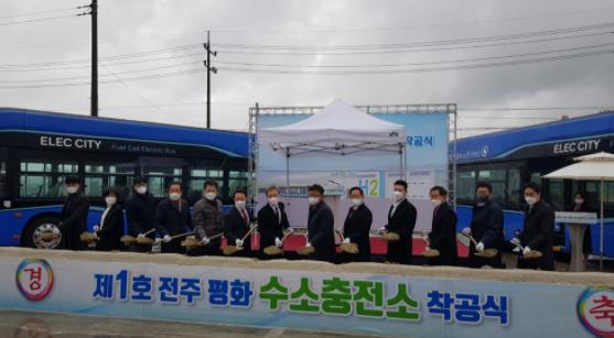 전북도는 30일 특수목적법인 코하이젠의 1호 수소충전소인 전주 평화수소충전소 착공식을 전주시 평화동 버스차고지 일원에서 개최했다고 밝혔다.
