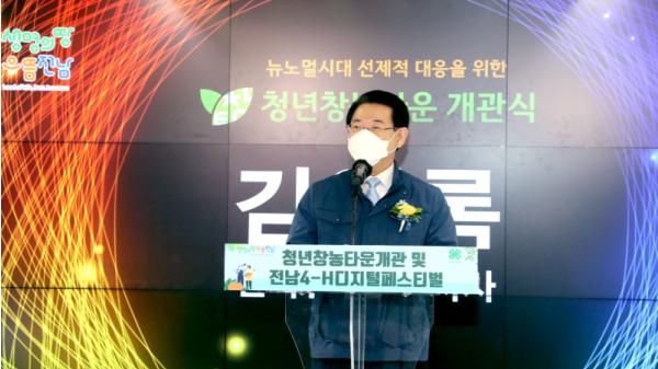 김영록 지사는 “청년 창농타운 개관은 농업이 고부가가치 산업으로 성장하기 위한 첫걸음이 될 것”이라며 “청년 농업인의 창의적 아이디어를 사업화하도록 창업 준비단계인 비즈니스 모델개발부터 컨설팅, 시제품 제작 등 창업까지 일련의 과정을 지원하겠다”고 말했다.