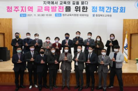 충청북도교육청은 30일 충청북도청주교육지원청 대회의실에서 청주시학교운영위원장협의회 및 청주시학교학부모연합회 회원 등 40여 명이 참석한 가운데 청주지역 교육발전을 위한 정책간담회를 실시하였다.