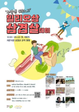 청주의 대표음식인 삼겹살을 특화 조성한 서문시장 삼겹살거리에서 12월의 첫 주말인 3일부터 5일까지 3일간 ‘주말엔 뭐하니? 일리오삼(1203) 삼겹살데이’ 문화행사가 열린다.