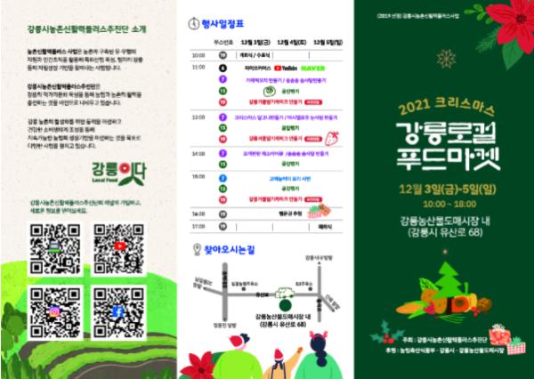 크리스마스 강릉 로컬푸드마켓은 강릉의 겨울 농산물을 생산자가 직접 판매하는 직거래 장터를 개최하여 소비자가 농산물을 직접 보고 구매할 수 있으며 강릉시에서 직접 개발한 강릉배와 곶감으로 만든 막걸리, 도라지 조청, 한과체험키트 등도 전시한다.