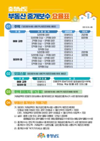 예산군은 최근 국토교통부의 주택 중개보수의 증가에 따른 ‘공인중개사법 시행규칙’ 개정으로 부동산 중개보수 요율이 인하됐다고 밝혔다.