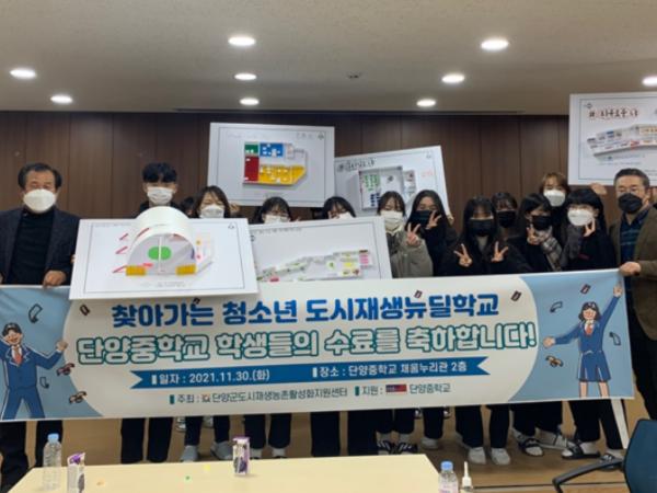 단양군도시재생·농촌활성화지원센터는 지난 11월 30일 단양중학교 학생들과 함께 운영한 도시재생학교 7기'찾아가는 청소년 도시재생뉴딜학교'수료식을 진행했다고 밝혔다.