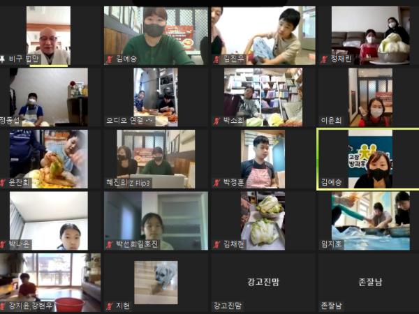 청소년들은 이날 오후 2시에 줌으로 연결해 김치 명인인 ‘지영스님’에게 발효식품과 김치 담는 방법을 설명 들으면서, 가족들과 함께 양념을 넣고 버무렸다.