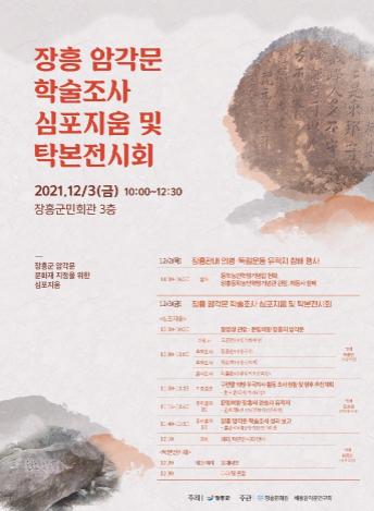 오는 3일 오전 10시에는 군민회관 3층에서 장흥군 암각문 문화재 지정을 위한 심포지엄이 개최된다. 이번 심포지엄은 2020년 5월부터 올해 4월까지 1년간 장흥 암각문 조사단에서 각별한 관심과 노력으로 자료 조사 및 분석을 진행한 장흥 암각문을 주제로 진행된다.