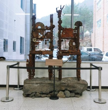 마을상징의자는 화살머리고지에서 발굴된 전쟁의 잔해물을 이용하여 남과북이 대립이 아닌 나란히 같은 방향을 바라보는 소통의 상징적 의미를 부여하여 만들었기에, 철원의 과거와 현재를 담고 미래를 꿈꾸는 평화체험 공간인 병영체험 수련원에 설치한 이유이기도 하다.