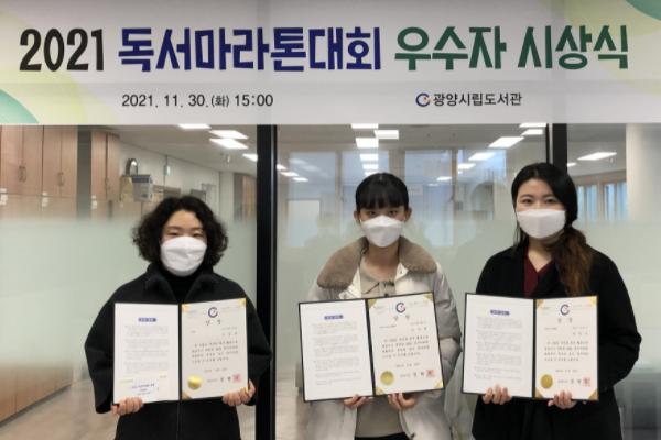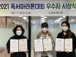 광양시립도서관은 지난 11월 30일, 중앙도서관에서 2021년 독서마라톤대회 시상식을 열고 일반부 우수자에게 광양시장상과 완주증서를 전달했다.