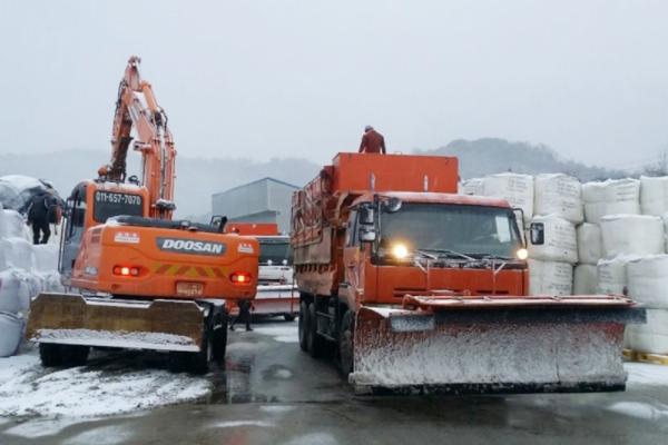 시는 이날 오전 9시부터 덤프와 굴삭기 등 제설 장비 15대를 동원해 취약지역을 중심으로 염화칼슘을 살포하는 등 도로면 결빙 예방에 힘을 쏟았다.