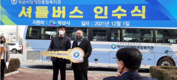 익산시 장애인종합복지관이 장애인의 이동 편의와 환경을 고려해 기존 노후화된 장애인 셔틀버스를 ‘친환경 신차’로 교체했다.