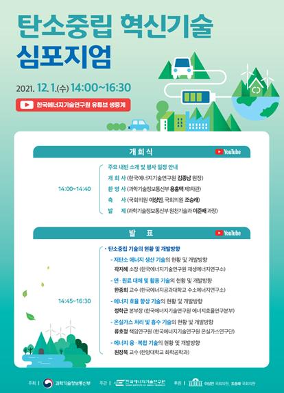 과학기술정보통신부는 지난 12월 1일 대전 오노마 호텔에서 「탄소중립 혁신기술 학술토론회(심포지엄)」을 개최했다.