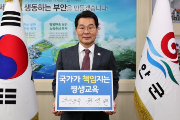 권익현 부안군수는 1일 보편적 평생학습 기본권 실현을 위한 ‘100만인 서명운동’ 챌린지에 전라북도 단체장중 최초로 동참을 선언했다.