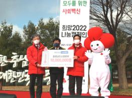 도 소방본부에 따르면 양승조 지사는 지난 1일 도청 앞 사랑의 온도탑 광장에서 충남사회복지공동모금회 성우종 회장에게 1천만 원 기부금 기탁증서를 전달했다.