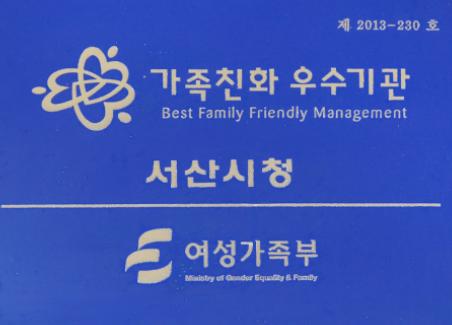 맹정호 서산시장은 “가족친화적인 조직문화를 만들기 위해 다양한 지원 시책을 추진한 결과”라며 “가정이 행복하고 일 잘하는 조직이 되도록 최선을 다하겠다”고 말했다.