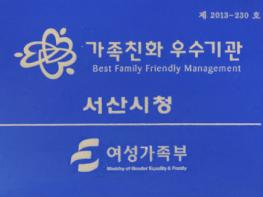 충남 서산시가 여성가족부 주관 ‘2021년 가족친화 기관’으로 재인증됐다.