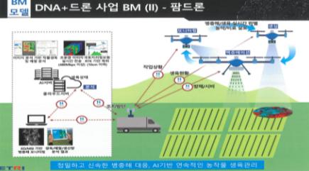 한국전자통신연구원이 총괄해 2024년까지 추진되는 ‘D.N.A 드론 스마트 정밀농업 기술개발사업은 빅데이터(Data), 네트워크(5G), 인공지능(AI)기술을 활용해 새로운 형태의 미래 드론서비스를 구현하기 위한 사업이다.