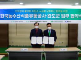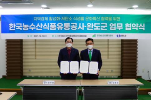 완도군은 지난 1일 한국농수산식품유통공사와 특산물 판로 확대를 통한 지역 경제 활성화 및 ‘코리아 그린푸드데이’ 캠페인 동참 등에 대한 업무 협약을 체결했다.