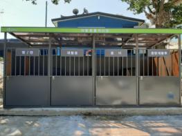 이 시설은 바닥 콘크리트 기초로 분리수거함을 고정 설치해 병·캔·고철·스티로폼, 플라스틱·투명페트병, 종이, 종량제 봉투 등 4종을 배출할 수 있다.