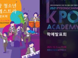 ‘평창 K-POP 아카데미, 청소년 오케스트라 학예 발표회’는 지역 청소년들의 건전한 여가활동을 장려하고 전문 교육을 통해 평창의 미래 꿈나무를 육성하기 위한 평창 청소년 K-POP 교육프로그램 및 평창 청소년 오케스트라 육성 두 사업의 결과를 발표하는 자리로, 12월 5일 일요일 오후 3시부터 약 50여 명의 학생들이 K-POP과 오케스트라 분야에서 갈고 닦은 실력을 선보일 예정이다.