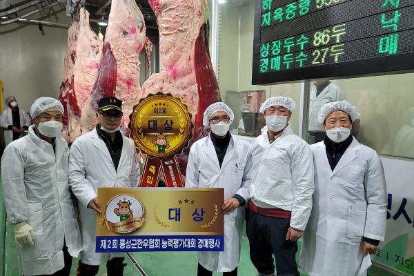 홍성군은 한우 고급육 생산을 통해 홍성한우 브랜드 인지도를 높이고 한우산업의 경쟁력을 확보하여 축산농가의 소득향상 도모하기 위해 지난 1일 홍성축산물공판장 ㈜관성에서 제2회 홍성군 한우협회 한우능력평가대회를 개최했다.