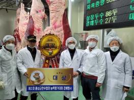 한우 고급육 품질평가 심사기준을 적용해 품질평가를 실시한 결과, 구항면에 사는 이용현 씨가 대상 500만 원(경매가 2천600만 원)의 쾌거를 거뒀으며 서부면 문동현 씨가 최우수상 300만 원(경매가 1천7백만원), 우수상으로 금마면 권혁주씨와 서부면 장현순씨가 100만원(경매가 1천6백만원/1천6백만원)을 차지했다.