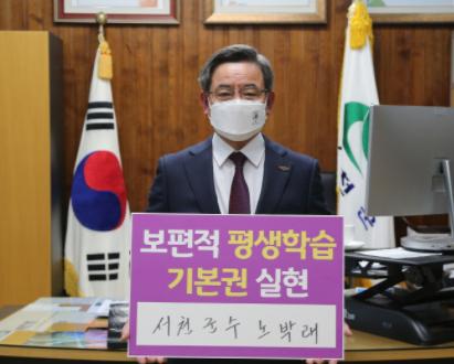 노박래 서천군수는 지난 1일 전국평생학습도시협의회 회원도시로서 지속가능한 평생학습사회를 이끌어가기 위한 ‘보편적 평생교육 실천을 위한 챌린지’에 동참했다.