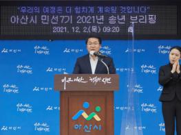 오 시장은 “길고도 짧았던 3년6개월은 눈부신 성장의 시작을 알렸지만 ‘더 큰 아산, 행복한 시민’을 완성하기에는 빠듯한 시간이었다”며 “50만 자족도시를 완성하기 위해 더 힘찬 가속이 필요하다”고 언급했다.