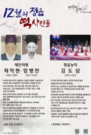 정읍시는 12월의 역사 인물로 태인의병의 ‘최익현, 임병찬과 정읍농악의 ‘김도삼’을 선정했다.