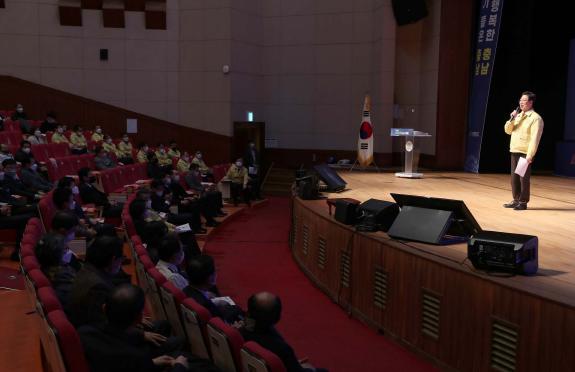 민선7기 4년차 시군 방문의 일환으로 진행한 이날 행사는 도정 보고와 대화 등의 순으로 진행했다.