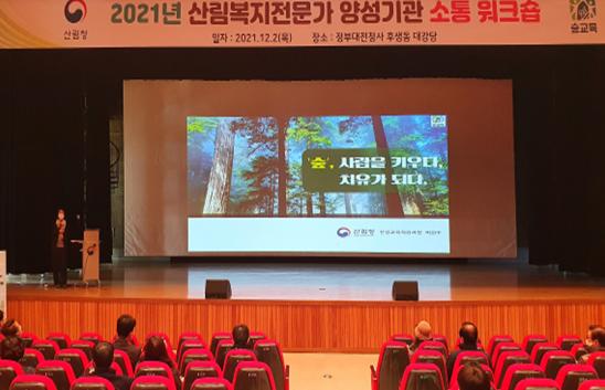 산림청은 12월 2일 정부대전청사 대강당에서 ‘2021년 산림복지전문가 양성기관 소통 연수회’를 개최했다.
