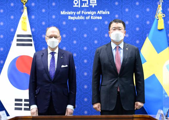 최종건 외교부 제1차관은 방한 중인 로베르트 리드베리(Robert Rydberg) 스웨덴 외교차관과 12.2.(목) 제9차 한-스웨덴 정책협의회를 개최하고, △양국관계, △실질협력, △다자협력, △한반도 문제를 포함한 지역정세 등에 대해 의견을 교환했다.
