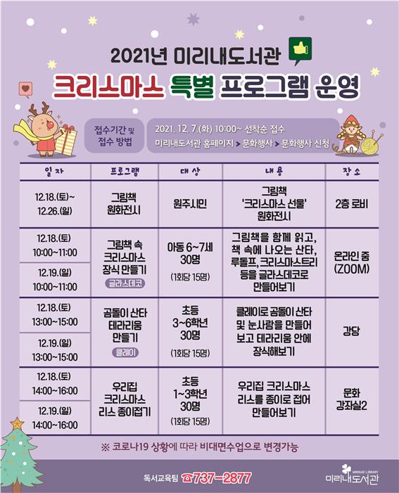 미리내도서관은 크리스마스를 맞아 어린이들이 도서관에 더욱 흥미를 갖고 즐거운 연말을 보낼 수 있도록 다양한 특별 프로그램을 운영한다.