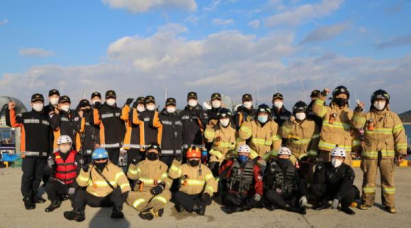 이날 훈련은 인원 30명, 장비 7대를 동원하여 항·포구 내 정박된 선박화재 시 신속한 초기대응 및 피해 최소화를 위한 선박화재 대응 현장적응을 위해 마련됐다.