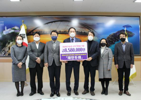 태안교육지원청 소속 지방공무원 봉사모임 『태안두레』는 지난 2일 회원들이 모은 회비로 관내 어려운 학생들을 위한 생계비 8,580,000원을 지원했다.