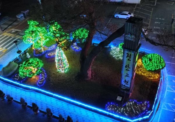 진안군은 연말연시를 맞아 군청을 방문하는 군민들에게 따뜻함을 전하기 위해 광장 느티나무 주변 조경수 및 군청사 전면에 트리전구, 눈꽃, 볼 등 각양각색의 LED로 장식된 경관조명을 설치했다.
