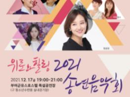 3일 군에 따르면, 부여군은 부여문화원 주관으로 오는 12월 17일 오후 7시 부여군유스호스텔 실내경기장(구 청소년수련원 실내경기장)에 마련된 특설공연장에서 ‘위로와 힐링’ 2021 송년음악회를 개최한다고 밝혔다.