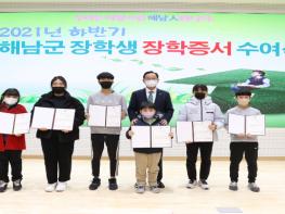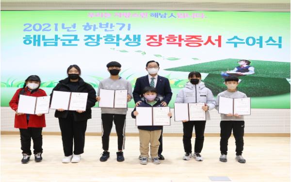 해남군은 2021년 하반기 해남군 장학생으로 예체능 등 특기자 장학생 등 6개 분야, 182명을 선발, 총 1억4,800만원의 장학금을 지급하고 장학증서 수여식을 가졌다.