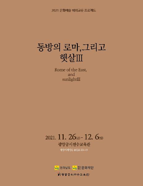 올해는 우즈베키스탄 국립예술원과 세 번째로 추진하는 교류전으로 전남문화재단이 후원하며 ‘동방의 로마 그리고 햇살 Ⅲ’이라는 주제로 11월 26일~12월 12일 광양궁시전수교육관 기획전시실에서 오프라인 전시와 가상현실(VR) 전시를 병행해 진행한다.