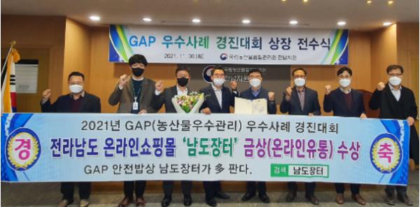 전라남도는 농수축산물 대표 온라인 쇼핑몰 ‘남도장터’가 국립농산물품질관리원 전남지원에서 열린 ‘2021년 GAP 우수사례 경진대회’에서 온라인 유통부문 최고상인 금상을 수상했다고 밝혔다.