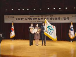 충북도는 지난 3일 서울 정부종합청사 별관에서 행정안전부가 주관하는 디지털정부 혁신에 기여한 공로를 인정받아 ‘2021 디지털정부 발전 유공’ 대통령표창을 수상했다.