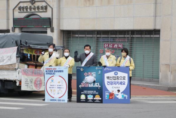 옥천군이 코로나19 지역사회 감염확산 차단을 위해 주민들을 대상으로 방역 기본수칙 준수 캠페인을 전개하며 자율방역과 백신접종에 협조해 줄 것을 당부했다.
