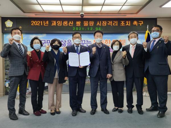 괴산군의회 의원 일동은 쌀값 안정을 위한 시장격리 조치를 촉구했다.