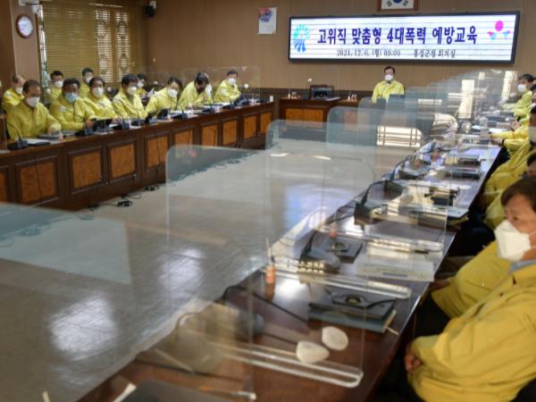 홍성군은 6일 기관장 등 고위직 공무원을 대상으로 맞춤형 4대 폭력(성희롱·성폭력·성매매·가정폭력) 예방 교육을 실시하였다.