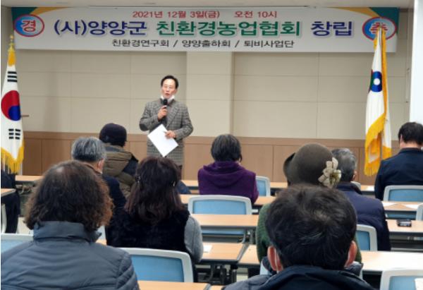 양양군 친환경농업 관련 단체가 연합한 사단법인 양양군친환경농업협회 창립총회를 지난 3일, 양양군농업기술센터에서 개최했다.