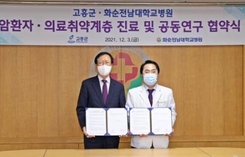 고흥군은 12월 3일 화순전남대병원과 암환자?의료취약계층 진료 및 공동연구를 위한 업무협약을 체결하였다.
