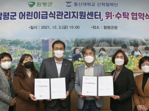 전남 함평군과 동신대 산학협력단이 지역 어린이 급식 영양관리를 위해 손을 맞잡았다.