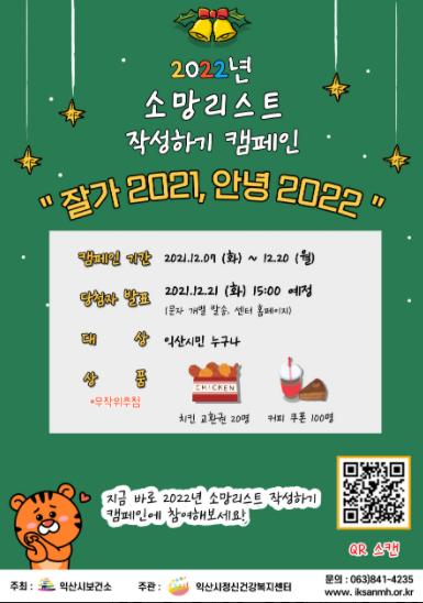 익산시 보건소와 정신건강복지센터가 다가오는 2022년을 맞아 소망리스트 작성하기 온라인 캠페인을 펼친다.