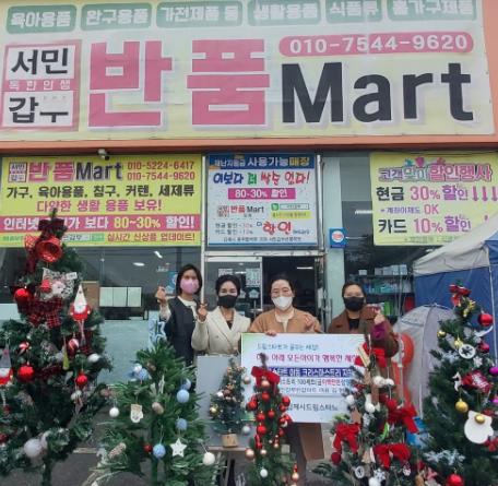 김제 서민갑부 반품마트는 다가오는 크리스마스를 맞이해 6일 어려운 아동들에게 지원해 달라며 김제시 드림스타트팀에 크리스마스트리 100세트(금2백만원)를 기탁했다.