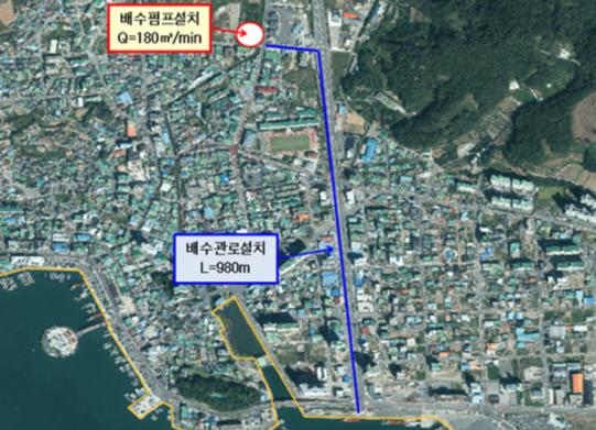고흥군은 2022년부터 2년간 사업비 70억원을 투입하여 배수펌프장 1개소와 우회배수로 980m를 설치하여 급속히 유입되는 우수가 분산 배출 되게 하는 항구적인 침수 방지 대책을 마련할 계획이며, 내년에는 기본 및 실시설계를 완료하고 2023년에 본 사업을 완료할 계획이다